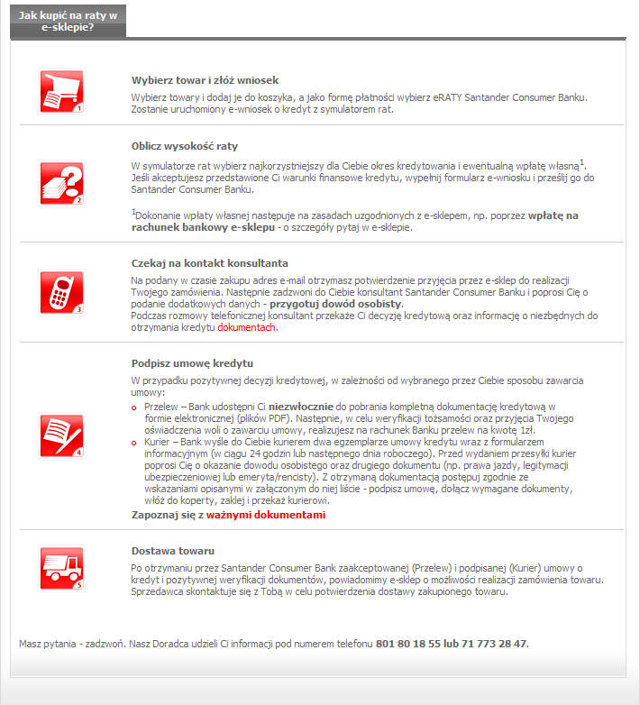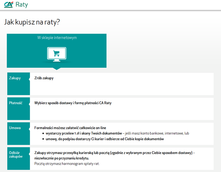 W naszym sklepie dostępne są systemy ratalne eRaty Santander Consumer Bank oraz Credit Agricole Raty.