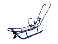 Sanki SONIA metalowe szeroka płoza z oparciem i pchaczem - granatowe