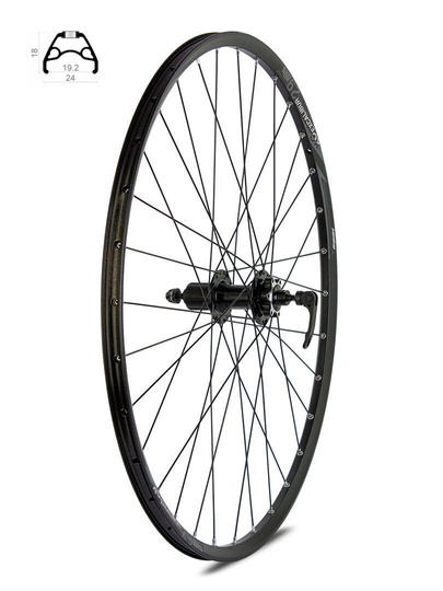 Koło tylne Rodi Excalibur XC 26", kaseta 8-10 rzędów, hamulec tarczowy, łożyska maszynowe - Czarne