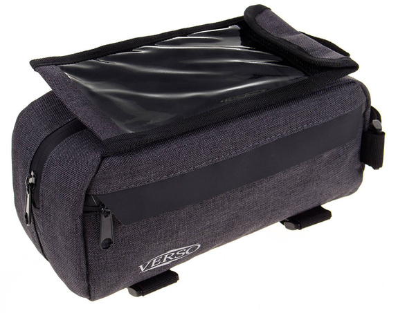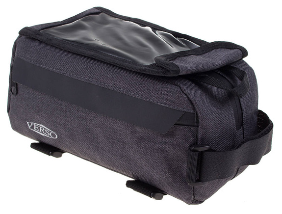 Sakwa rowerowa marki VERSO model MARONI. Jest to niewielka torebka mocowana na ramę roweru ze specjalnym, przeźroczystym etui na smartfon, dzięki któremu jest on cały czas widoczny dla rowerzysty podczas jazdy. Sakwa Verso jest praktycznym rozwiązaniem na to aby móc transportować drobne przedmioty czy np. niezbędne narzędzia podczas wycieczek rowerowych. Dzięki temu, że zajmuje ona bardzo mało miejsca nie powoduje dyskomfortu podczas jazdy. Wykonana została z wytrzymałego i odpornego na uszkodzenia mechaniczne materiału. Występuje w kolorze czarnym co korzystnie wpływa na jej odporność na zabrudzenia. Dla poprawy widoczności na drodze wyposażona została w odblaskowe elementy. Mocowanie sakwy jest bardzo łatwe, służą do tego specjalne paski na rzep.