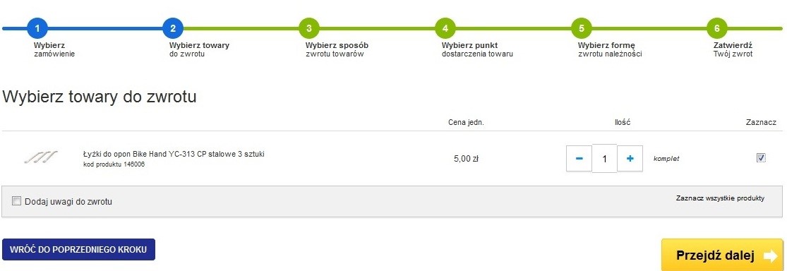 2. Przejdź do zakładki Zwroty towarów i kliknij Dodaj zwrot. Wypełnij elektroniczny dokument zwrotu przechodząc przez poszczególne kroki.