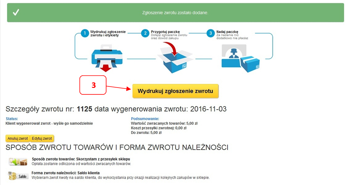 3. Wydrukuj zgłoszenie zwrotu (dołącz do zwracanego produktu).